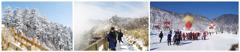 08:00在成温立交桥下麦德龙统一集合,经成温邛高速路直接前往西岭雪山,(自理交通索道120元/人,必须消费)上达西岭雪山滑雪场,自费参加,滑雪,悠波球热气球,高山滑道,山地越野车等娱乐项目,或者乘坐全国最长2500米,亚洲落差最大1000米的观景索道(自费120元/人)沿途观赏自然风景到达海拔3200多米高的日月坪欣赏云海、佛光奇观.如果你兴致高昂还可以继续前行半个小时到达阴阳界景区,赏高山杜鹃花,运气好的话可以看到西岭雪山独特的奇景——阴阳界,即一边是晴空万里,一边是雾气笼罩,这种景色唯有西岭雪山独有。(约3小时)。下午乘车返回酒店。 若住花水湾,晚上可前往花水湾小镇泡温泉(温泉费用自理)洗去一身烦扰。