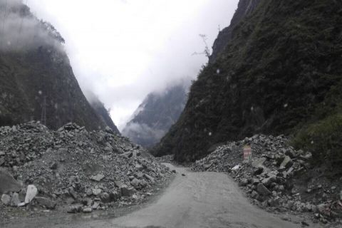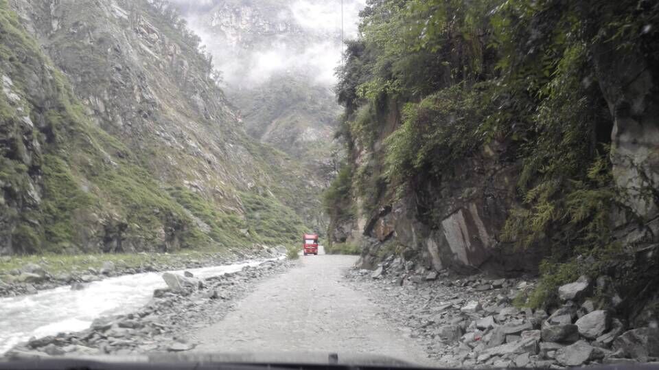德格—江达 一般910德格出发到一隧道是今天铺的柏油路,下午通的车,大概半小时后,隧道开始走旧道,路况还好。但翻山的路不太好,现在山上堵着呢,一辆客车横在路中间