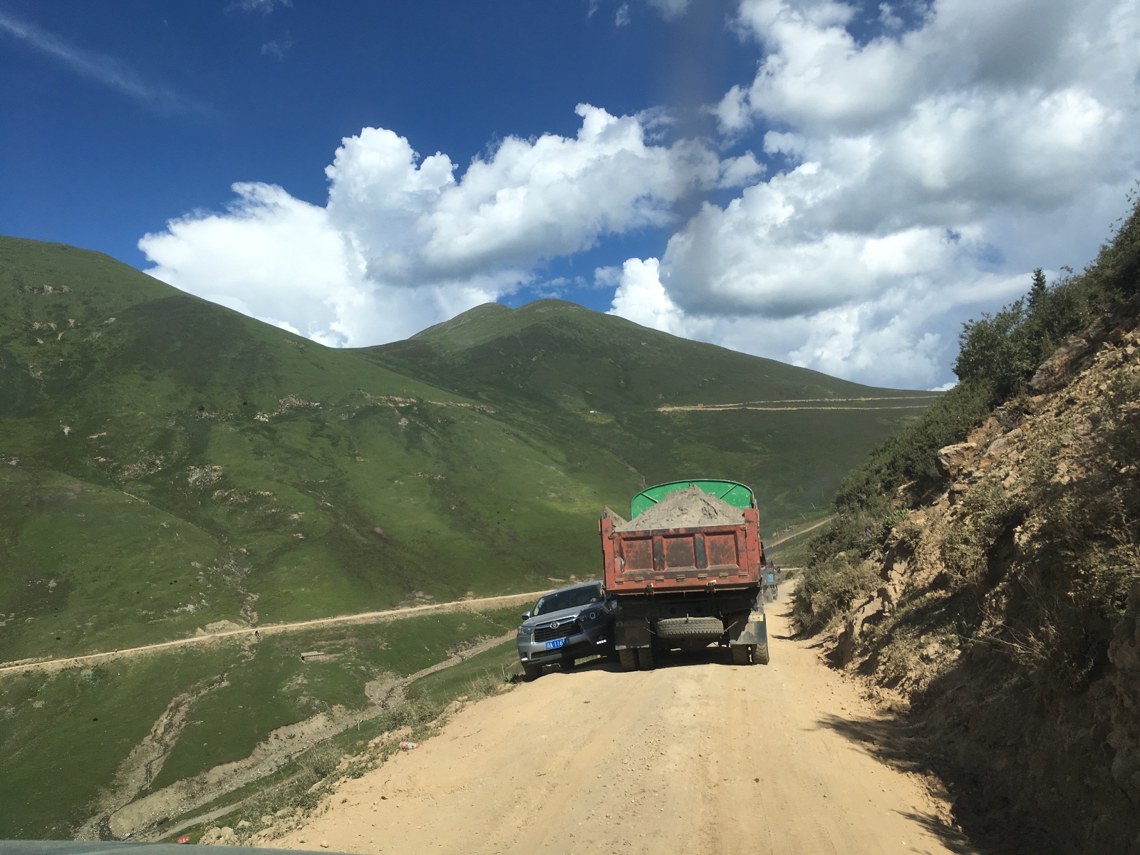 江达—昌都 一般今天26日早起从江达县城出发前往昌都强巴林寺。才出县城不远遇水毁路面,走便道,大货车堵车,跟随藏B的小车从大货车缝隙里钻出来,中间泥泞,前驱车勉强通过,估计再被大货车来回轧几遍,小轿车通行就困难了。其余路况良好,部分地段油路上有坑,小心。祝平安顺利!