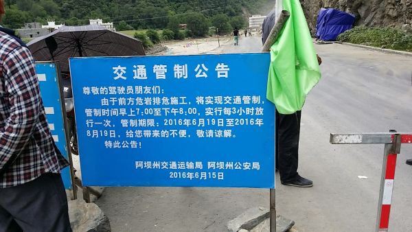 映秀—日隆 良好刚从都江堰到四姑娘山,开了5个半小时。在卧龙境内有一段路较差,不过小车过也没问题,其他路况极佳。下图是日隆镇四姑娘山加油站前的告示牌,我下午3点到的,等在护栏外,没过多久就放行了,警车带着走。日隆镇上的路一般,在修,特别是往长坪沟的那条路,小车要十分小心,本人挂底两次。