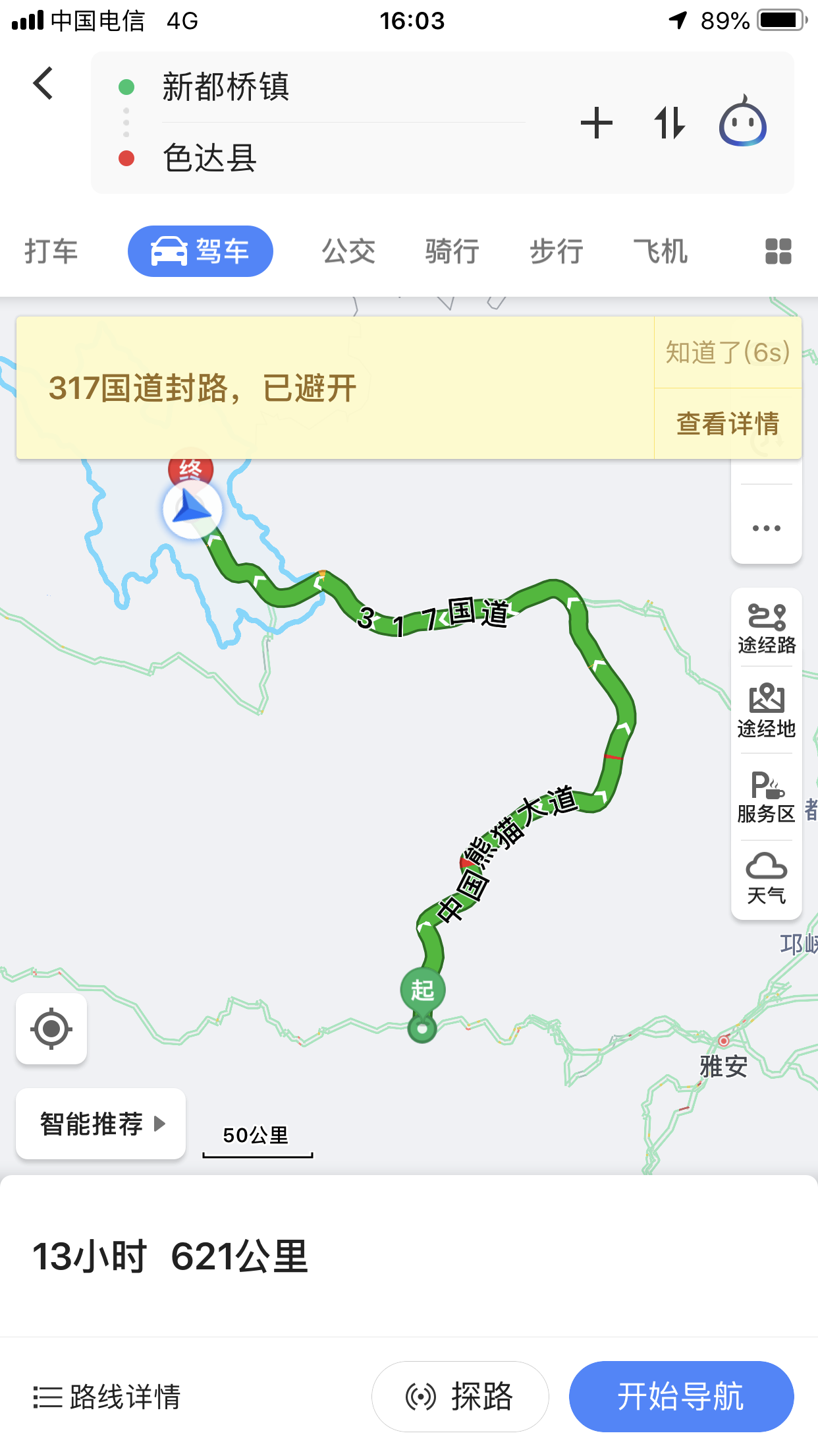 - 我也曾经以为是断了,但是昨天已经通过,此路段正常,不用看导航,一直沿着317走就到炉霍了。
