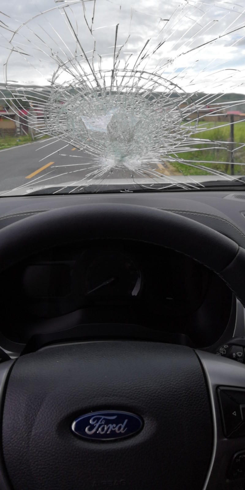 甘孜到理塘S217路况可以,但是有落石,很不幸我们的车前风挡玻璃被击中,万幸的是人没事